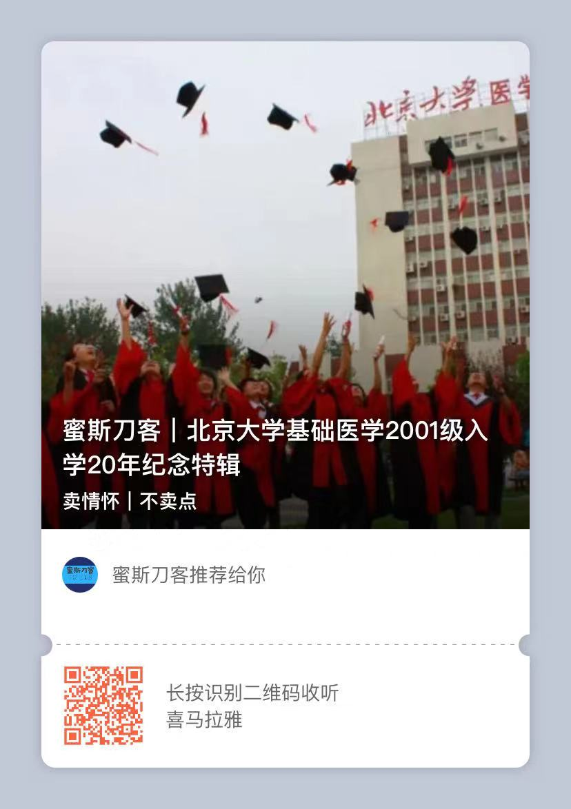 欢迎订阅喜马拉雅音频“蜜斯刀客”,听听北大医学部这些同学聊聊那些年那些人那些事儿。